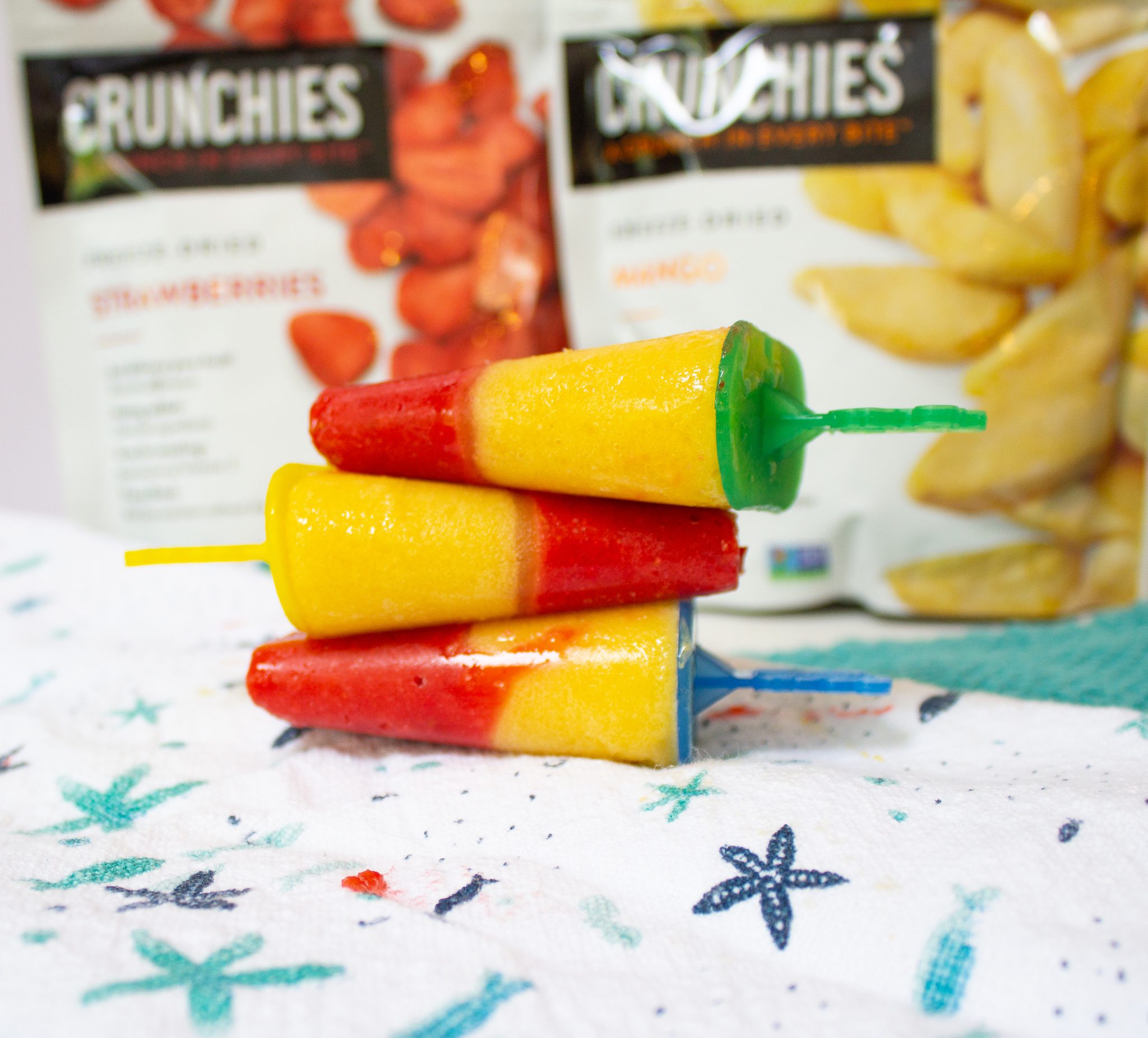 The weather is heating up, which means we need treats to help cool us down. Many store-bought popsicles are full of added sugar, but our popsicle recipe is full of real fruit. We’re using Crunchies Freeze Dried Strawberries and Crunchies Freeze Dried Mangos and blending them with juice to create a multi-flavored popsicle that will keep your family happy and cool all summer long.