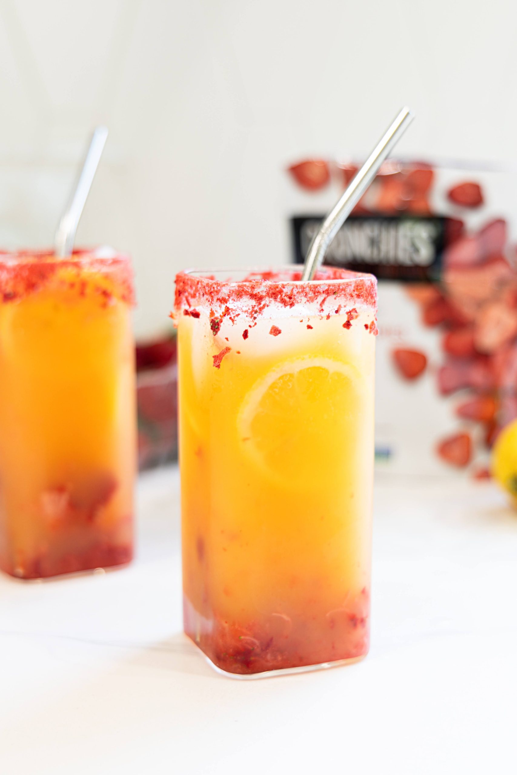 The secret ingredient to making this recipe taste like a tropical vacation is the Crunchies Freeze-Dried Strawberries that are used to create a strawberry dusted rim. Trust us when we say, you do not want to skip this step.
